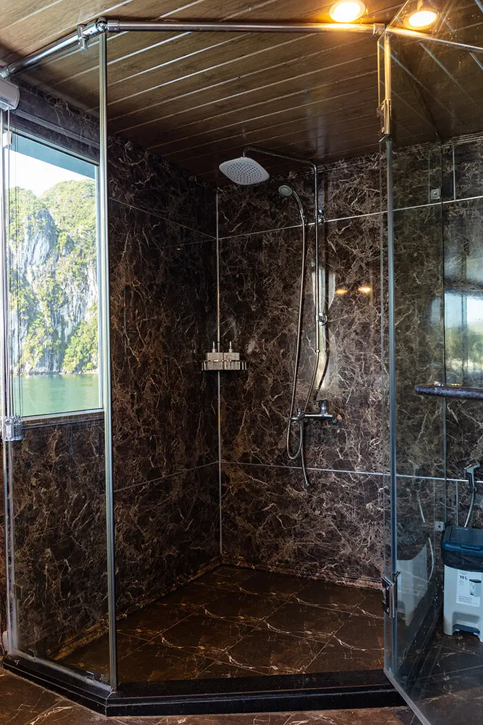 The steel cruise has a total of up to 25 deluxe cabins with private balconies and modern in-suite amenities for a pleasant accommodation. Moreover, this 4-star cruise in Halong bay is also equipped fully with safety equipment to ensure all passengers to safe stay.