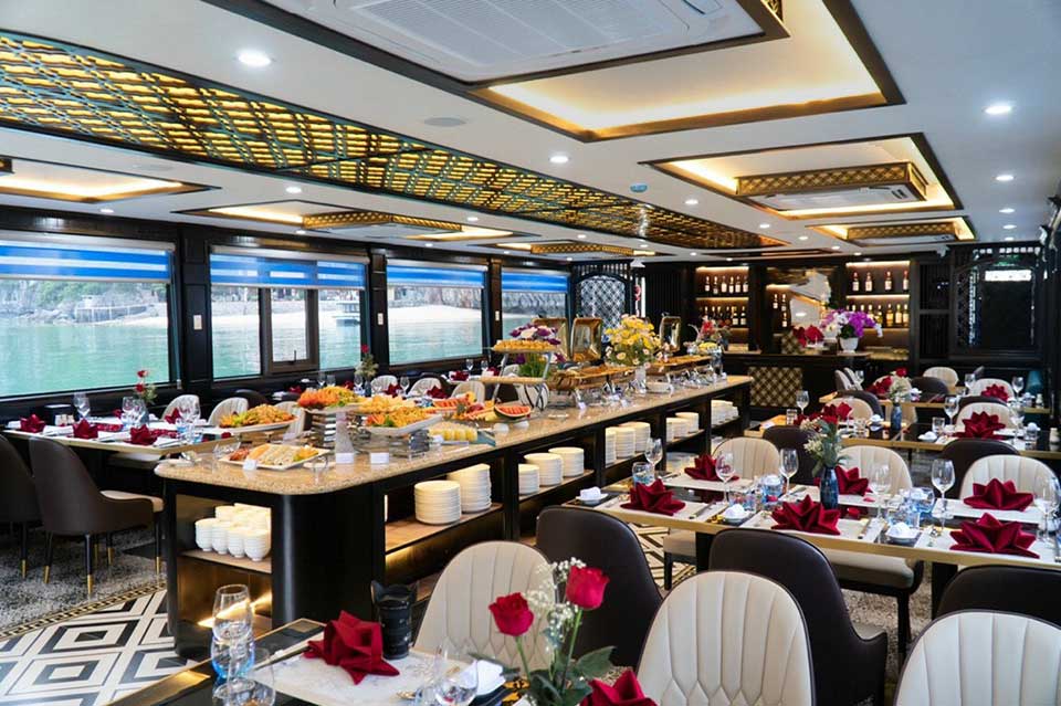 16:00 After that, you will get back to cruise and ready for our Sunset Party. Vietnamese tea, coffee, fresh fruits and snacks will be served when you’re relaxing on the sundeck or in the Jacuzzi.