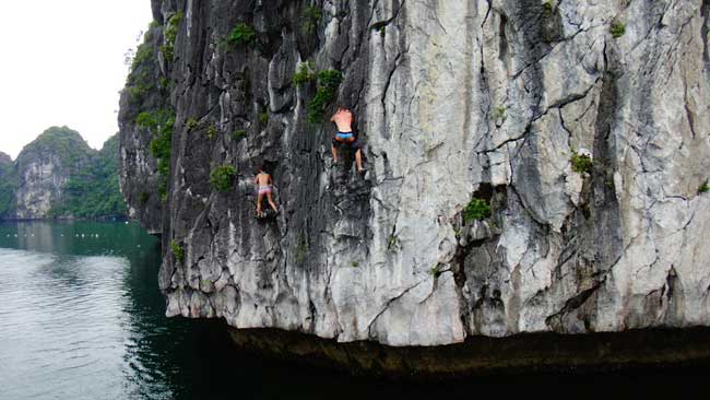 Adventurous travelers in Ha Long are very keen on exploring the whole cliffs by rock climbing. It is one type of outdoor and thrilling activity that helps them enjoy the original nature with beautiful 3000 limestone cliffs, rising from the water. Typically, Cat Ba Island is the most favorite spot wholly chosen to take their climbing by many tourists.
