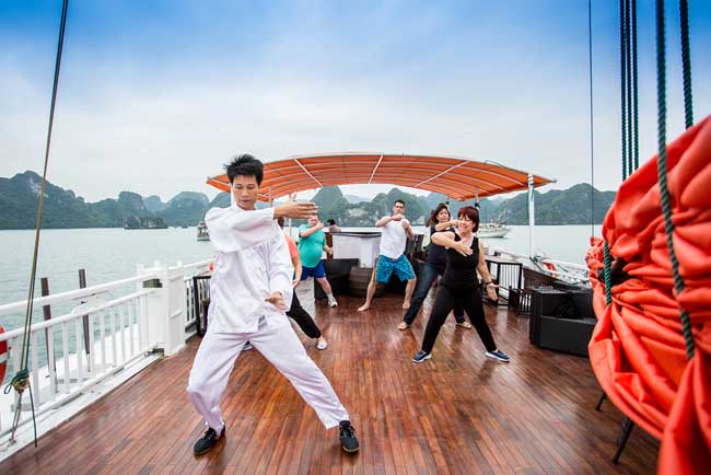Many cooking classes are held to help guests not only to try fine cuisine but also expand their knowledge about Vietnamese culinary culture. In general, a chef on the cruise will expertly show and guide you how to make traditional dishes or how to impeccably carve different kinds of fruits and vegetables. Some of you can be also invited to take part in an interesting competition to find who makes the dish fast. After the competition, don’t mind sharing your achievement with other companions.