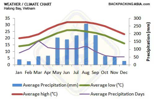Best time to say hello to Halong is said to depend on your travel purpose and your own definition of an ideal trip. If the weather is your main concern, then from September to November and from March to May are indeed perfect for this trip. In case you are a budget traveler, then make sure to schedule your journey in the period of May and September. At that time, you are luckily able to hunt for a few great discounts on a cruise trip. But, keep yourself cautious as the risk of bad weather can even go up during the months of July and August (see our tours to Halong Bay here).