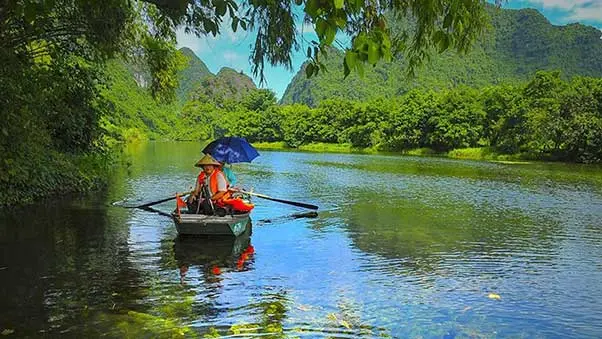 Embark on a traditional sampan gently roweddown the exquisite river through numerous caves: Lam Cave, Vang Cave, Dai Cave, Thanh Truot Cave,...and Cao Sơn Temple, Suoi Tien Temple, Vu Lam Temple…