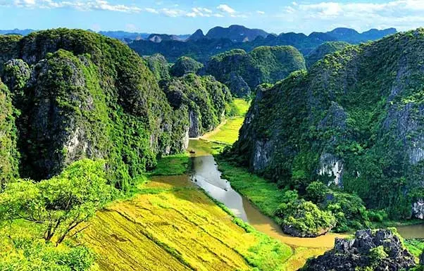 13:30 – Leave for the Trang An Grottoes, an out-standing natural beauty of majestic limestone massif at 20 square kilometer rise dramatically out from rice paddy fields. Deep into the linked chains of towering mountain are pristine places of mystical valleys, numerous fresh water ponds, and jungle.