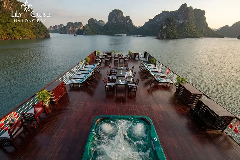 Lily Cruise is a top favorite 4-star cruise for mysterious cave attractions and islands. Featuring a perfect blend of classic Western and rustic Vietnamese styles, Lily Cruise offers the most authentic trip on a mid-range cruise in Halong Bay.
