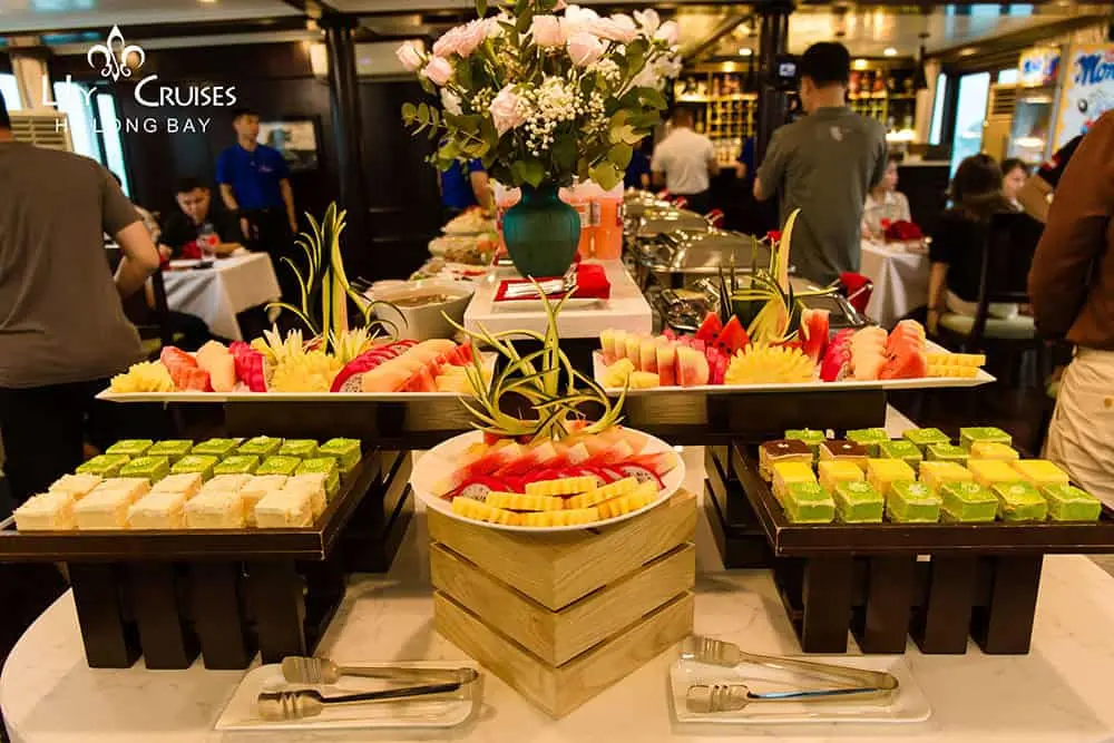 - Meals on board are fusion: Vietnamese, seafood & international. Guests should advise ofany special food preferences, allergies or dietary requirements at least one (01) week prior to the cruise date.