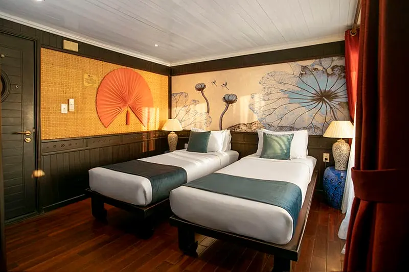 Explore Halong Bay in style and privacy aboard Bhaya Legend - a new cruise vessel featuring boutique cabins furnished in classic Eastern style.