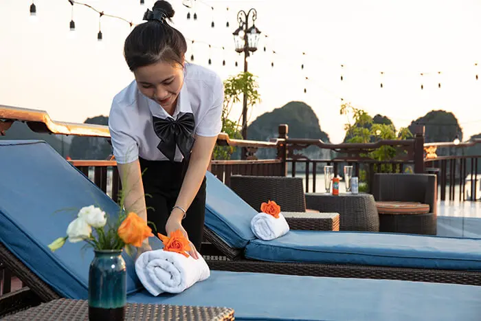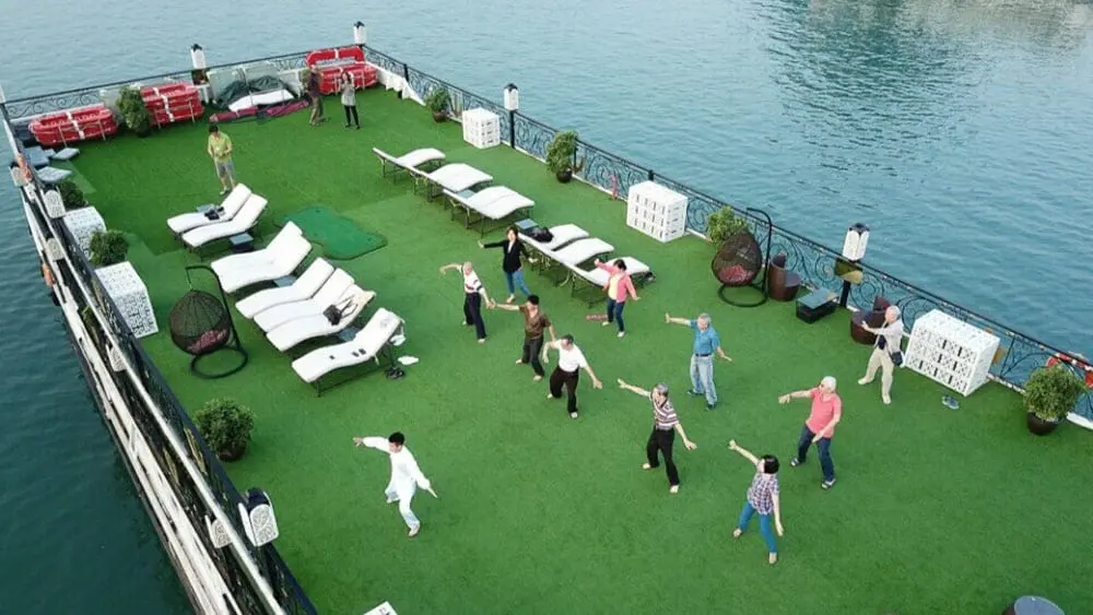 06:00 - Warm up your day with a Tai Chi lesson on the sundeck with a breathtaking view as the sun rises on Halong Bay.