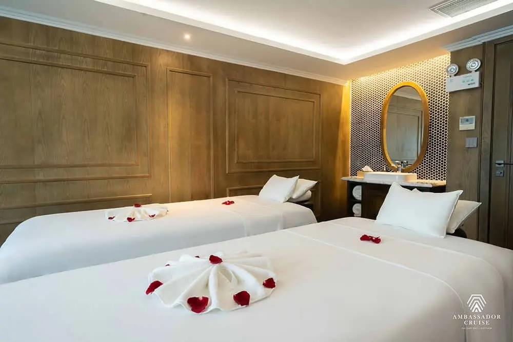 Arrive at the Ambassador's Lounge (1st Floor, Halong International Cruise Port) for check-in, after which you will be transferred to the magnificent Ambassador Cruise.