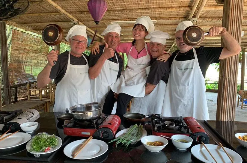 Welcome drink and join the cooking class. Our chef will teach you the differences about the ingredients and traditional methods how to cook 4 dishes of Vietnamese food.